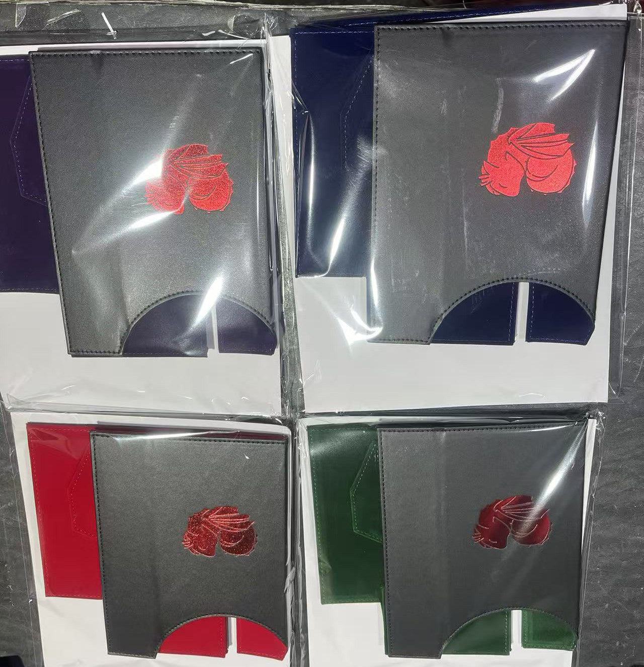 Tower and tray velvet are a matching color with black vegan leather and a red dragon decal